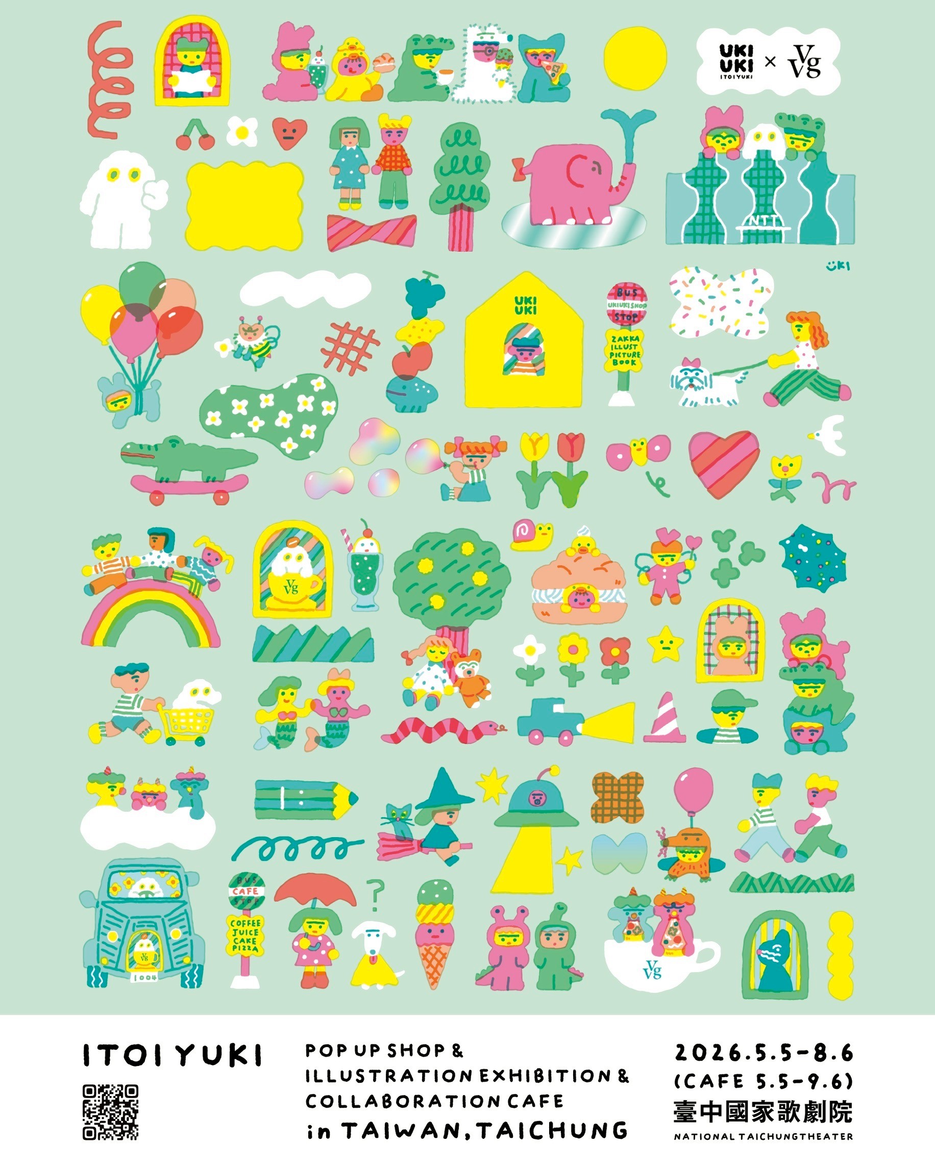 一場療癒的城市漫遊,即將在插畫的溫柔筆觸下開展,ITOI YUKI 將臺中歌劇院繪畫妝點童趣的奇幻樂園,在曲牆與玻璃帷幕穿梭鮮明的輕柔色彩, 不只是一場展覽,更是邀請你成為畫中主角,沈浸童趣的饗宴,品嚐餐桌上的可愛美味,捕捉限定童心,重拾快樂微笑。